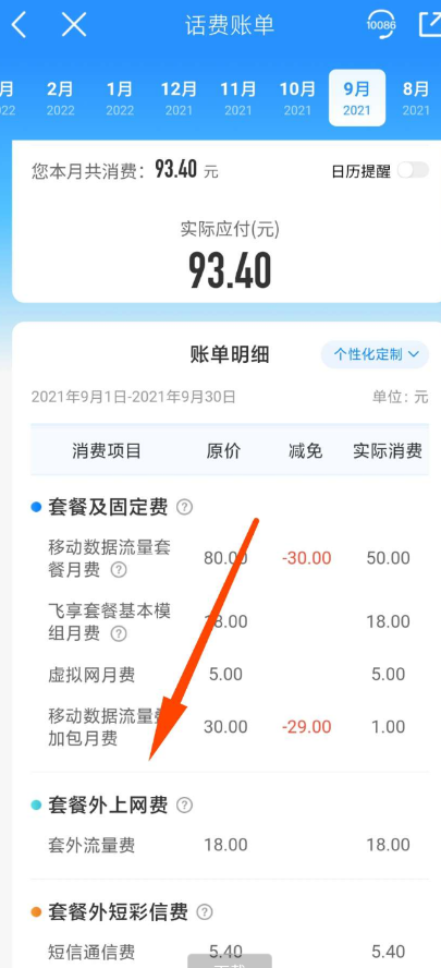 近一年的都可以看,我们看套餐外上网服务费 每个月都有不同的费用,我有的18 50 60的[滑稽][玫瑰]