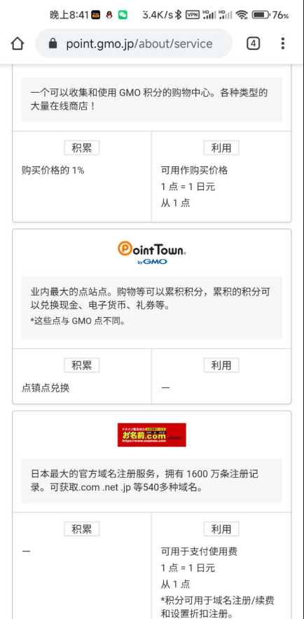 2. 点开GMO里的积分使用与获得,下滑选择域名注册那个选择