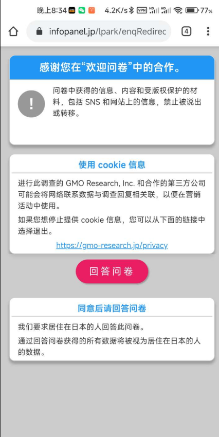 注册好了点那个问卷调查赚钱,然后信息随便填邮箱就填1500001就行,然后按照提示一直点击,出现最后一个页面你就可以重新进入gmo的主页面了[滑稽][玫瑰]