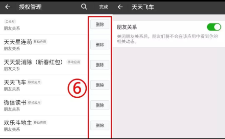 另外,这些授权会在【朋友关系】中显示。通俗的讲,就是你在用微信授权了一个应用,你的微信好友也授权了这个应用,那么在应用中就可以相互看到应用中的动态。如果不想让对方看到的话,关闭这个朋友关系就可以了。
