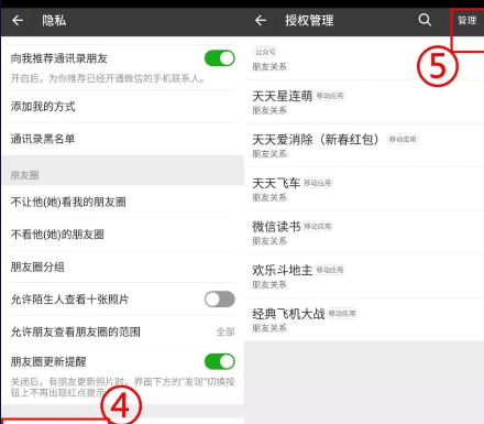 在这里可以看到你曾经用微信授权过的所有的应用,再点右上角的【管理】,可以对不需要继续授权的应用删除授权。