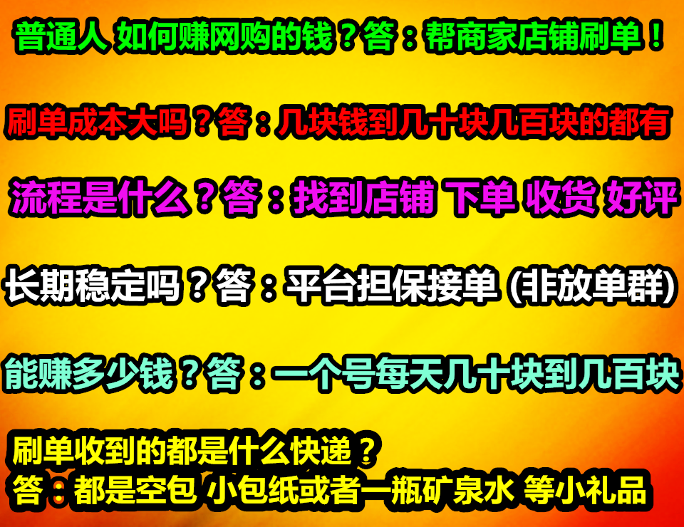 长期稳定吗?答:只要有网店 就一直有刷单的!