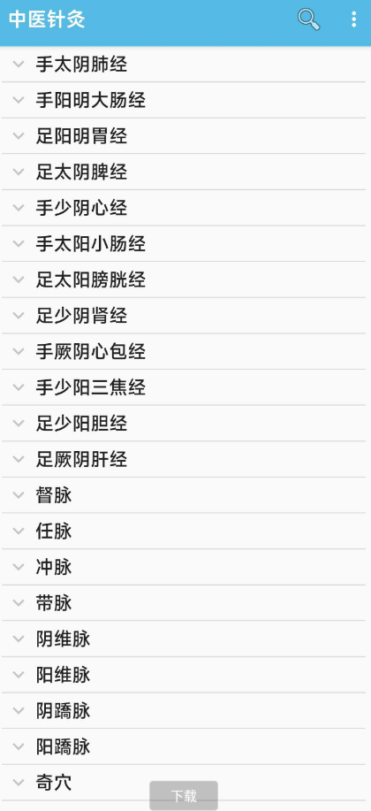 1、应用的界面很简洁,如果有学习针灸或者是需要知道部分穴按摩可以试试,里面的穴位介绍超级的详细而且全面;