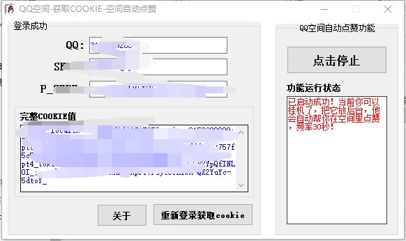 【软件名称】扣扣空间自动点赞取cookie