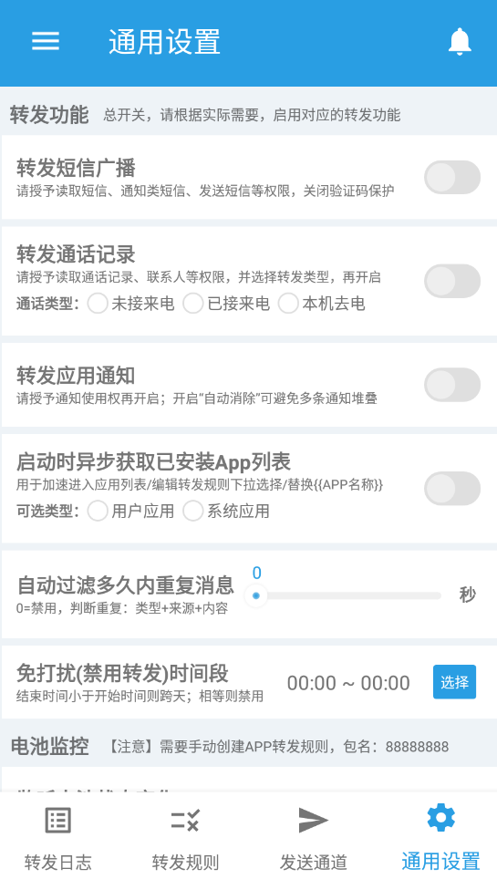 本软件是一款开源的短信转发工具,功能很多,有多个手机卡,不怕短信漏了。
