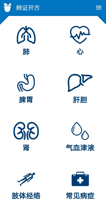 中医辩证开方1.0包括心、肝胆、脾胃、肺、肾、