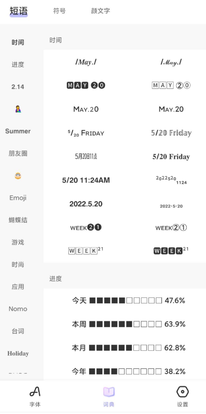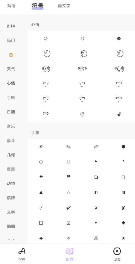 【应用名称】:花样文字 【应用版本】: v2.9.6 【应用大小】:6.8MB 【软件介绍】:花样文字可以在各种社交软件上打出花样字体、特殊符号,自带朋友圈热门文案,常用花式短语,颜文字,小辫子 Emoji 等,让在你聊天交友,网站冲浪时把文字玩出花。已解锁VIP!