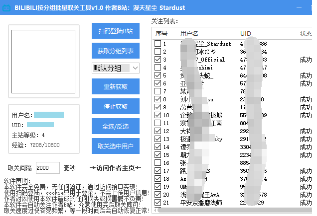 >>关于批量取关:经常抽奖关注了很多UP主,开奖后一个一个取关删动态非常麻烦,(从来没中过奖)然后网上找了一些脚本,不过并不是很好用 简单操作即可实现批量取关 易语言程序,**毒软件可能误报 注:工具理论上长期可用,也许你使用此软件可能碰到一些问题,可以反馈在此贴点评中,除非问题很大,否则不会修复(咕~,