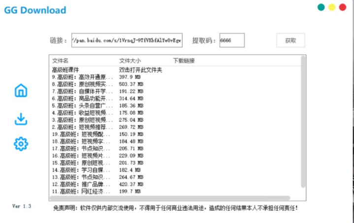 软件介绍:GGDownload为一款免费的下载工具 能够实现百度网盘的不限速下载功能 非常的实用 并且为一款免费的软件 软件使用截图如图