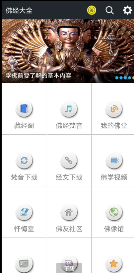 佛教弟子必备APP 【应用名称】:佛经大全 【应用包名】:com.dayday.fj 【应用版本】:7.1.6 【应用大小】:20.0MB 【适用平台】:安卓 【版本说明】:最新版,无广告,纯净绿色! 【官方介绍】:佛教大全 -梵音 梵音咒语视频下载,祝您在佛教修炼路上更近一步,纯净的发音是王道 -经文 各种原文,咒语,研究,心经和楞严咒等 -祈愿 祈愿不必在寺庙,手机上也可以祈愿,还可以跪拜佛祖,更换祭品等 -博文 每日推送精品课程等 【使用方法】:打开即可