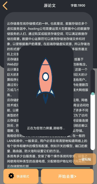 现今网络上降重价格最低在5元/千字,此app采用的降重模型免费也可以达到同效果