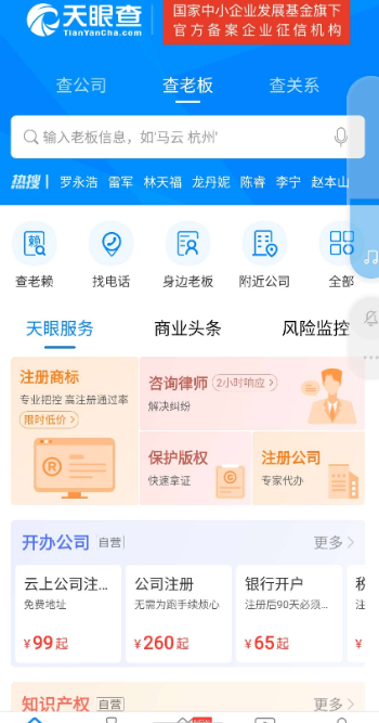 天眼查v12查公司查老板查关系是各界商务人士必备的企业征信利器 【应用名称】:天眼查 【应用版本】:v12.1.0 【应用大小】:46M 【支持平台】:安卓(Android) 【测试机型】:小米8