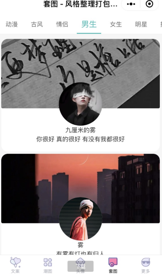 文案头像壁纸套图四合一,蓝光壁纸!!已去除广告!! 【微信小程序】:雪花文案 【小程序版本】:3.0 【小程序大小】:0M 【小程序平台】:安卓Android/苹果ios 【测试机型】:小米10 【使用说明】:微信小程序里搜索名字或者扫码就可以进去使用了,壁纸,头像,套图,文案等等都是可以下载的哦!可以下载的哦!可以下载的哦! 【使用方式】:直接打开微信小程序搜索“雪花文案” 或者用微信扫描下方的小程序码哦 打开方式建议:保存下方小程序二维码,微信扫一扫快一点哦(´-ω-`)