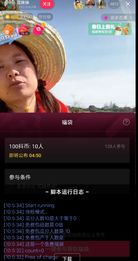 【软件名称】:抖音自动抢福袋 【软件版本】:99999 【软件大小】:13MB 【支持平台】:安卓 【软件介绍】: 玩抖音必备神器,自动挂机抢福袋 码字不易,拿走吱一声。拒绝伸手党[滑稽] 【软件说明】 此版本为叶子破解版,已去除广告和收费功能[真棒][真棒]