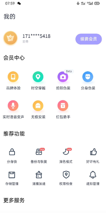 分身有术Pro是一款分身术多开神器,不需要Root手机也实现多开 分身有术Pro是一款分身术多开神器,不需要Root手机也实现多开,分身有术可以实现虚拟定位支持虚拟定位和机型模拟、自动抢红包,可以应用无限多开、微信扣扣红包助手、机型模拟、虚拟定位。手机号登录即可使用! 修改特点: 解锁至尊VIP(需登录) 去掉启动广告 去掉升级检测提示 优化布局界面更加简洁 去添加应用列表的APP广告 精简各项广播和服务驱动