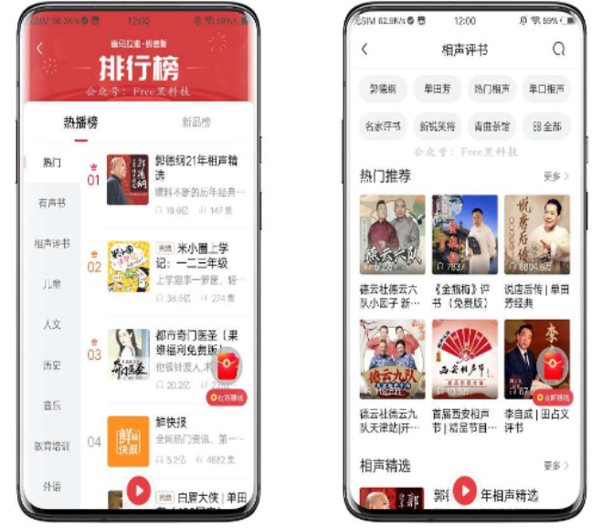 【应用名称】:喜马拉雅极速版 【应用包名】:com.ximalaya.ting.lite 【应用版本】:1.7.9.3 【应用大小】:8.0MB 【版本说明】: 由于该版本是修改版,打开后直接使用,无需登录,首页和启动页面都已经去除广告,节目分类中类目也非常齐全。 排行榜内都是比较热门的内容,包括相声评书、儿童人文、历史音乐、教育培训等等。 我们直接来测试最新一期节目,点击即可播放,同时支持下载和倍速播放,其它更多的附费资源大家自行测试,大多数都是免费可以听的。