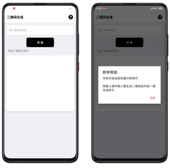 一款把文字,网址链接,等内容一键转换成二维码的小工具 【应用名称】:二维码生成 【应用包名】:com.lcewmsc 【应用版本】:1.0 【适用平台】:安卓