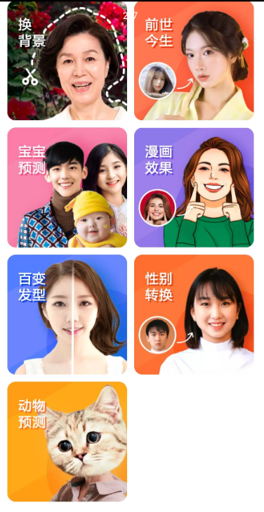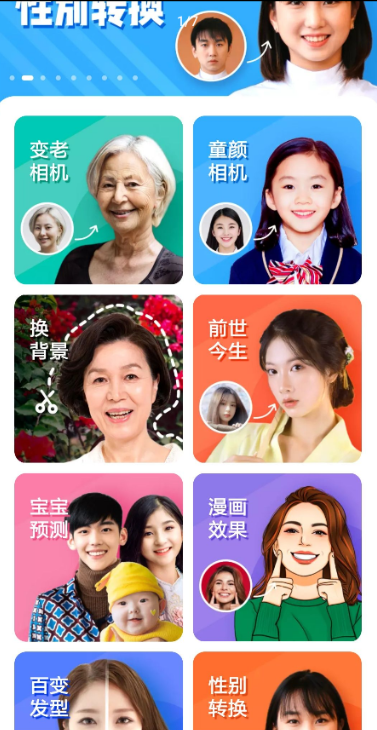 【还有照片性别转换[滑稽]】【返老还童】 【应用名称】: 百变特效相机(去广告,绿化版) 【应用版本】:1.0.0 【应用大小】:41.21M 【支持平台】:安卓 【测试机型】:小米 【软件介绍】: 百变特效相机是一款功能强大的趣味相机应用,包含变老相机、童颜相机、漫画特效、一键切换背景等各种酷炫功能,操作简单,快速上手,一键制作各种好玩的照片,快来下载体验吧~