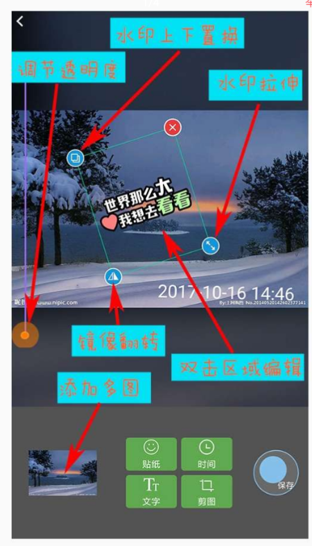 【软件名称】图片文字水印 【软件版本】3.0 【适用平台】安卓 【软件介绍】 觉得是真的不错,水印这些功能都十分齐全,分享出来大家一起用 【测试截图】