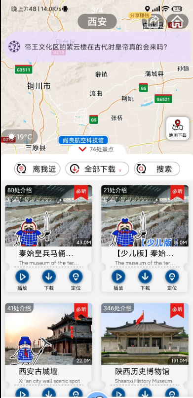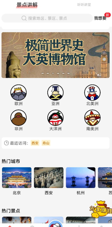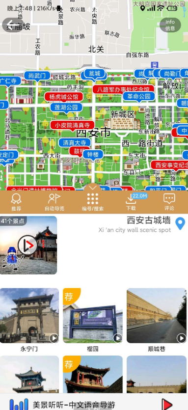 这是一款语音导游app,录入了全世界主要名胜古迹和景点信息,配有专业人员语音讲解,带你走遍全世界。应用内置多条旅游路线可供选择,让你感受旅游乐趣的同时还能学到不少当地的文化和艺术。 【应用名称】:美景听听语音导游 【应用版本】: v5.2.1 【应用大小】:70.24MB 【支持平台】:安卓(Android) 【测试机型】:小米K40 【软件介绍】:软件是解锁版,用手机号登录后就可以免费听各大景点介绍以及下载。 目前App覆盖了全球6大洲100多个国家、景点数量10万。