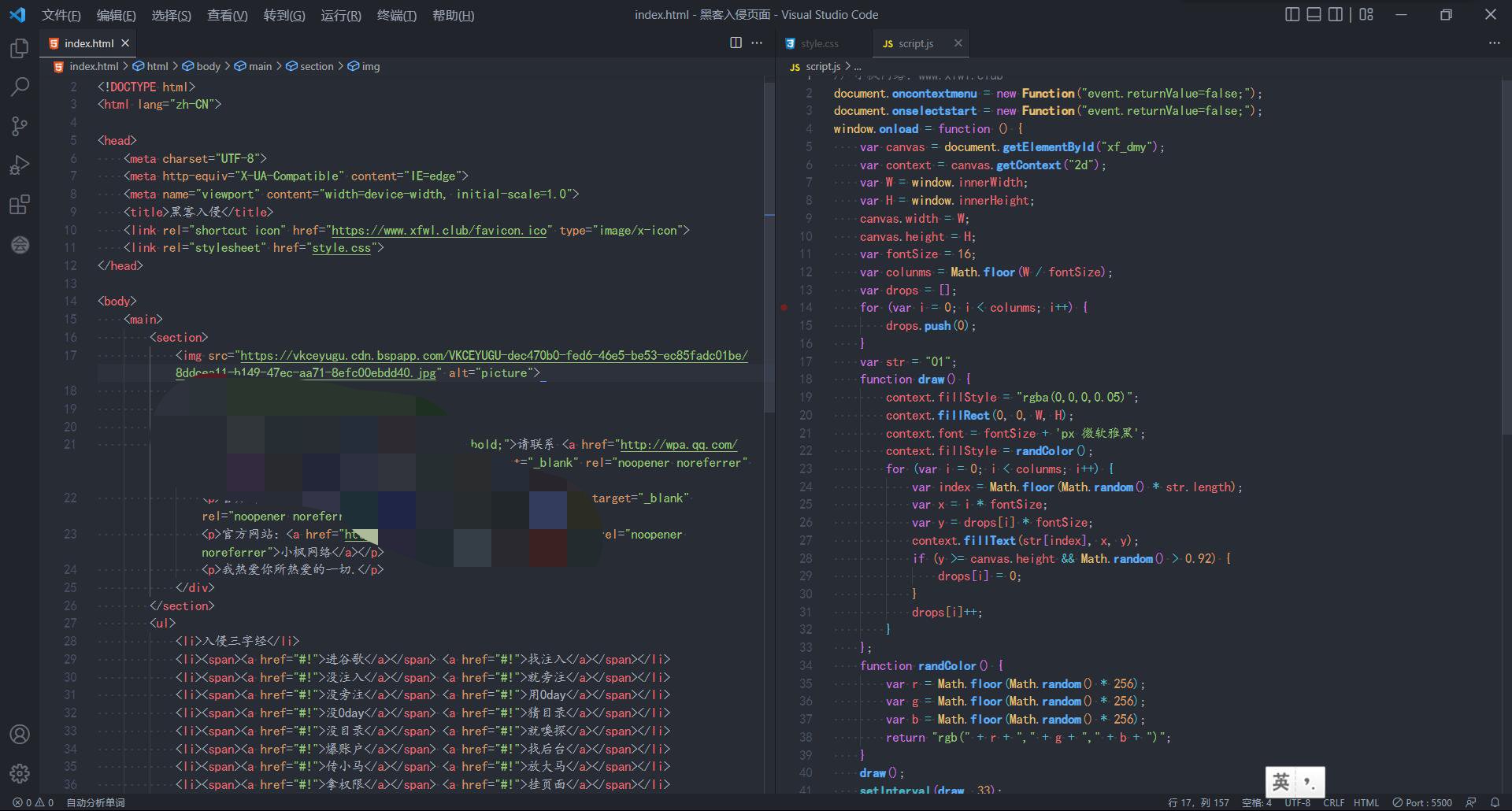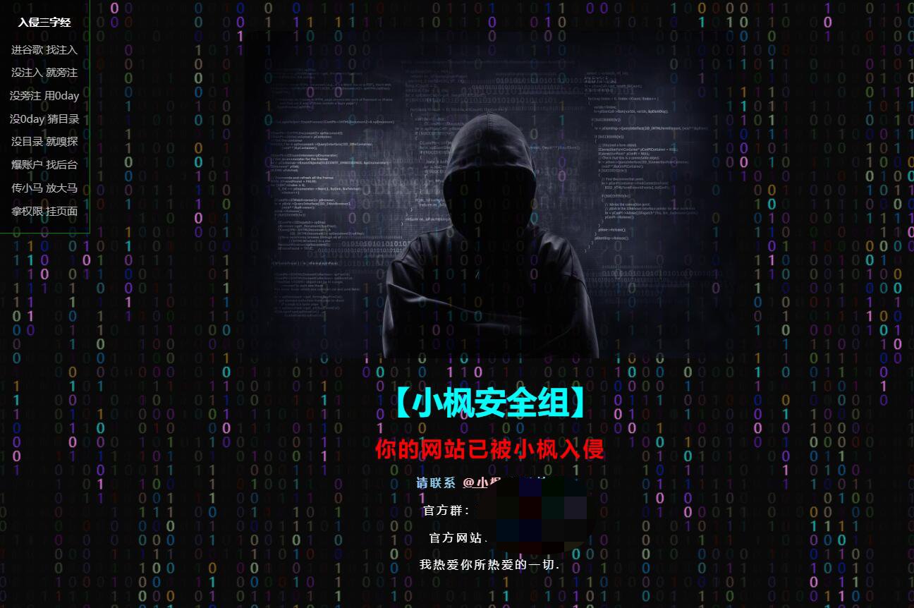 前几天在某群看到一个黑客入侵的网页,觉得蛮炫酷的就给他仿作了一个![滑稽]